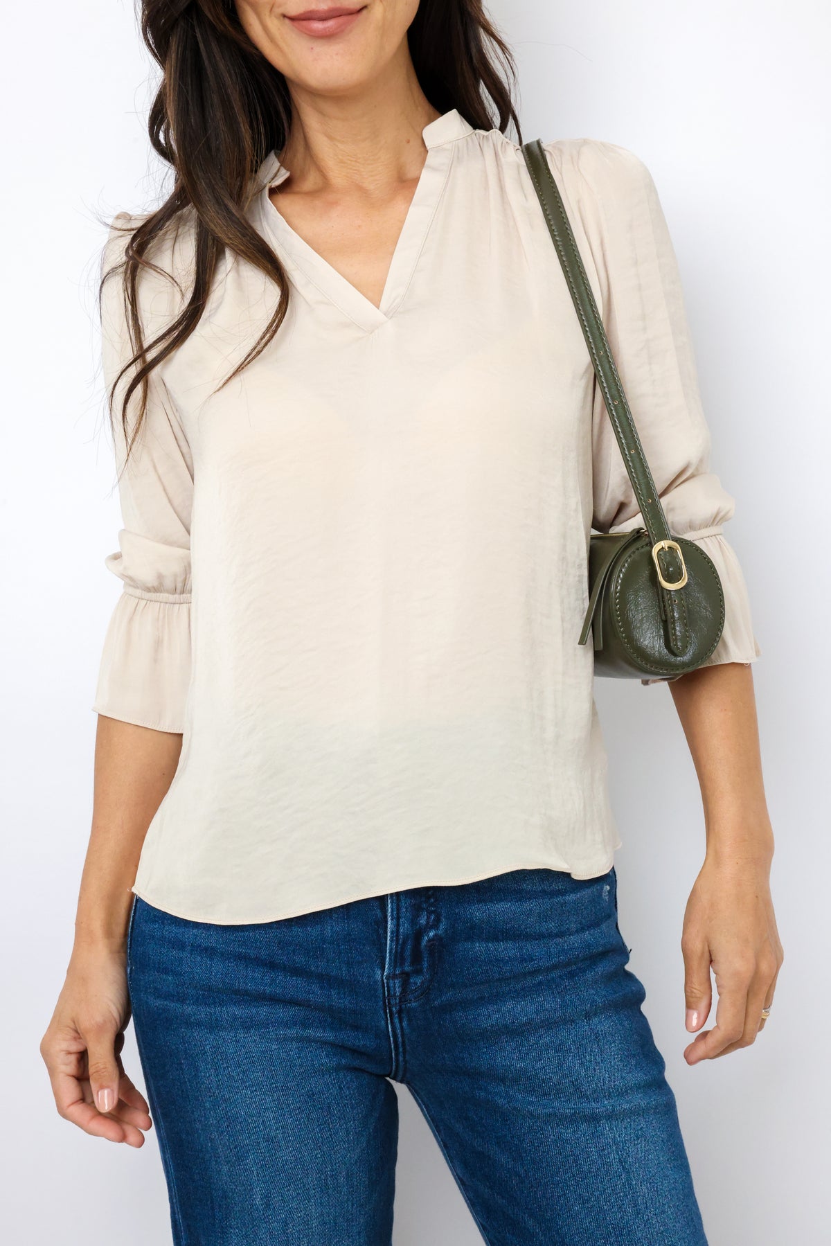 Charlotte Split Neck Elbow Sleeve Top